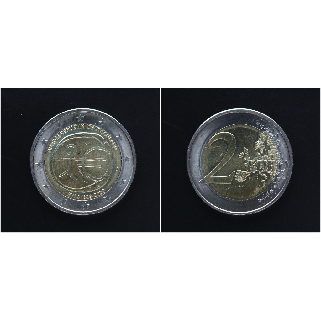 Германия ФРГ 2 Евро 2009 J год Серия 10 лет Экономическому и валютному союзу (BOX470)