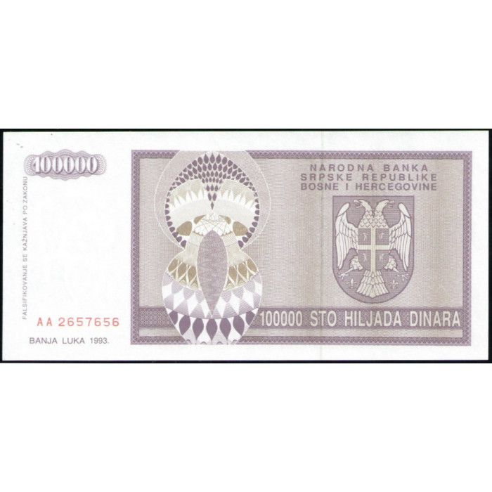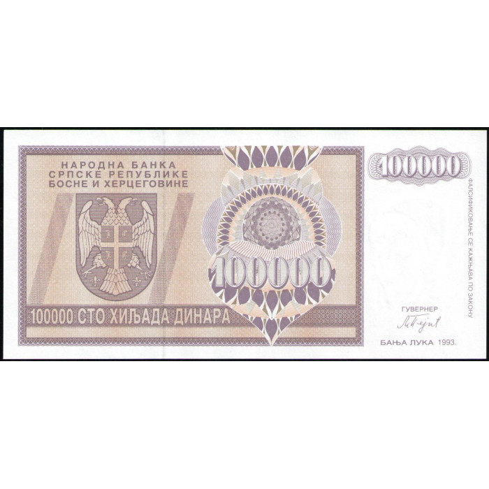 Босния и Герцеговина 100000 Динар 1993 год , UNC