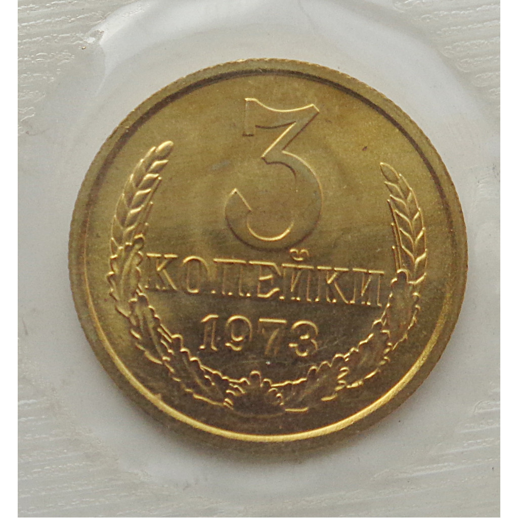 3 копейки 1973 г., 8519, Федорин - 161, PROOF, редкость, запайка, холдер