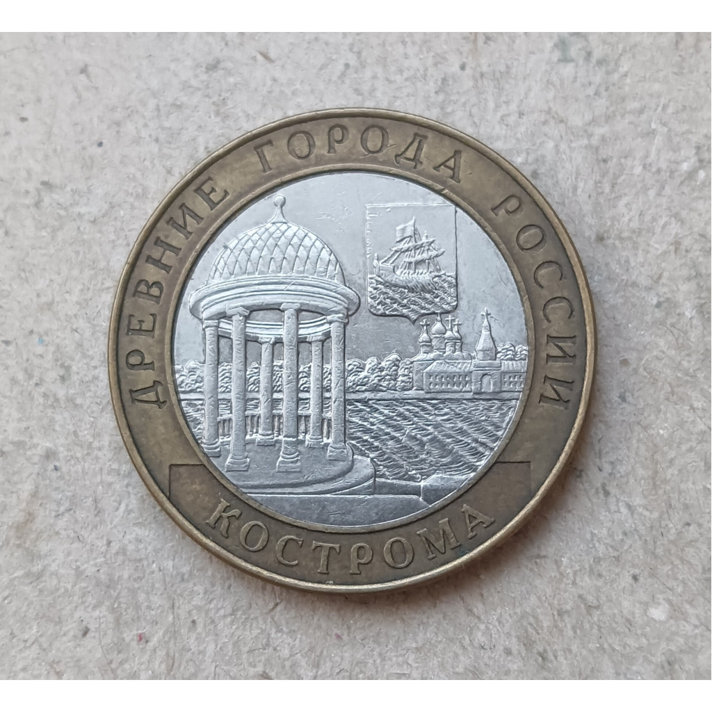 Россия 10 Рублей 2002 год , СПМД , Из обращения , Кострома ,Древние города России , Биметалл