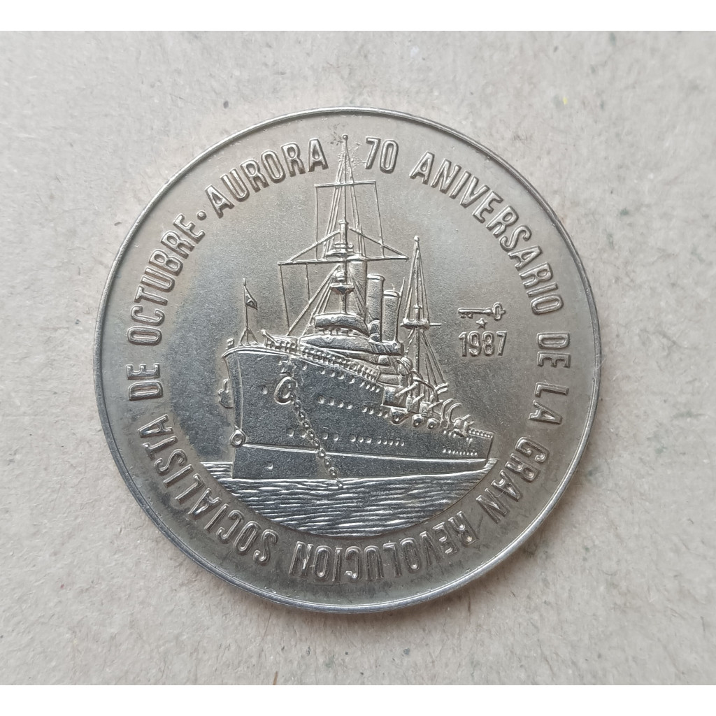 Куба 1 песо 1987 год , 70 лет Октябрьской Революции , Крейсер Аврора