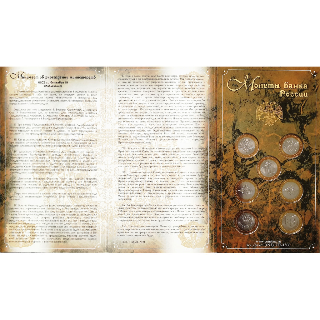 Буклет с набором монет «Манифест об учреждении министерств», 1802-2002 год