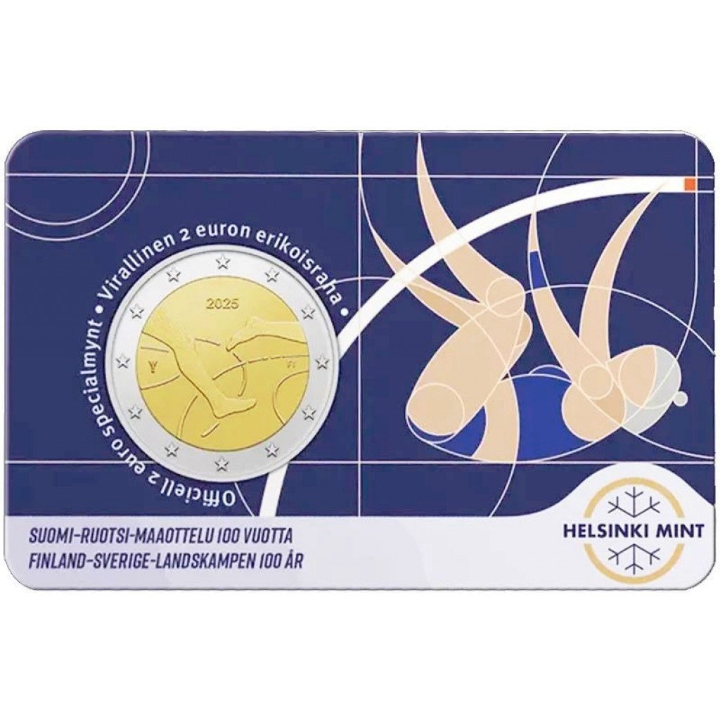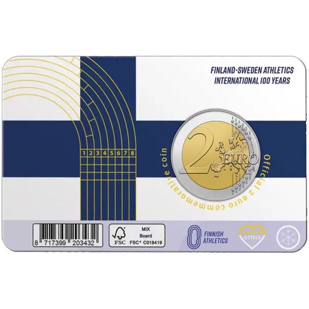 Финляндия 2 евро 2025 год BUNC UC# 120 100 лет Финско-шведским легкоатлетическим играм