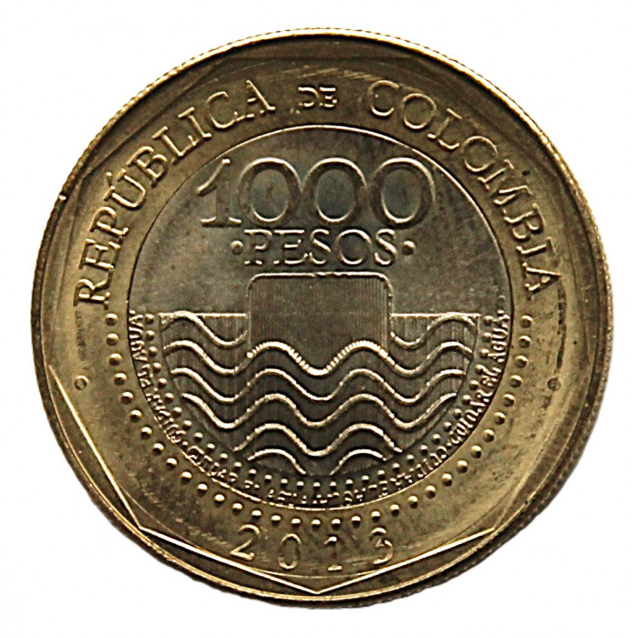 КОЛУМБИЯ 1000 песо 2013 UNC. Логгерхед. Головастая морская черепаха