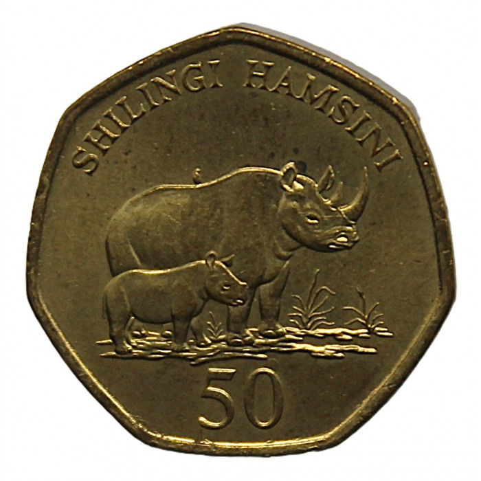 ТАНЗАНИЯ 50 шиллингов 1996 UNC. Носорог