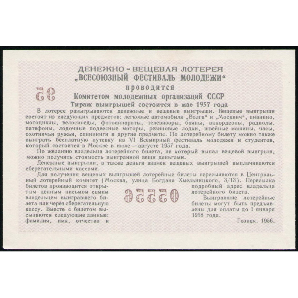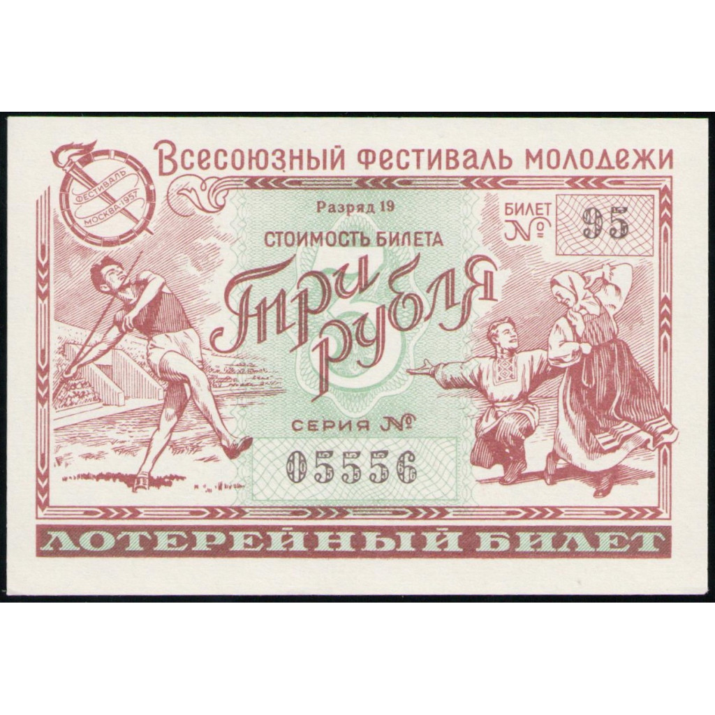 СССР , Всесоюзный фестиваль молодежи , Лотерейный билет , 3 Рубля 1957 год