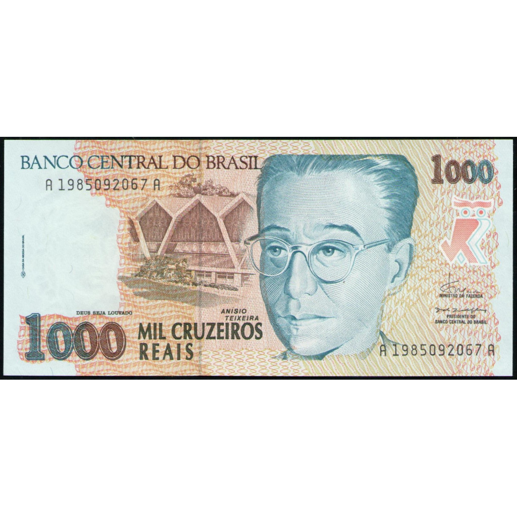 Бразилия 1000 крузейро реалов 1993 год , UNC