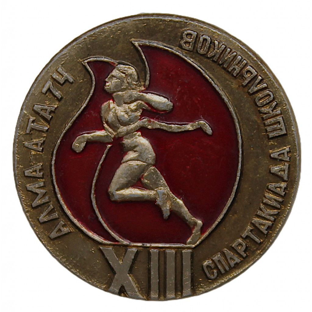 СССР нагрудный знак «XIII СПАРТАКИАДА ШКОЛЬНИКОВ». Алма-Ата 1974. Легкая атлетика. Бег