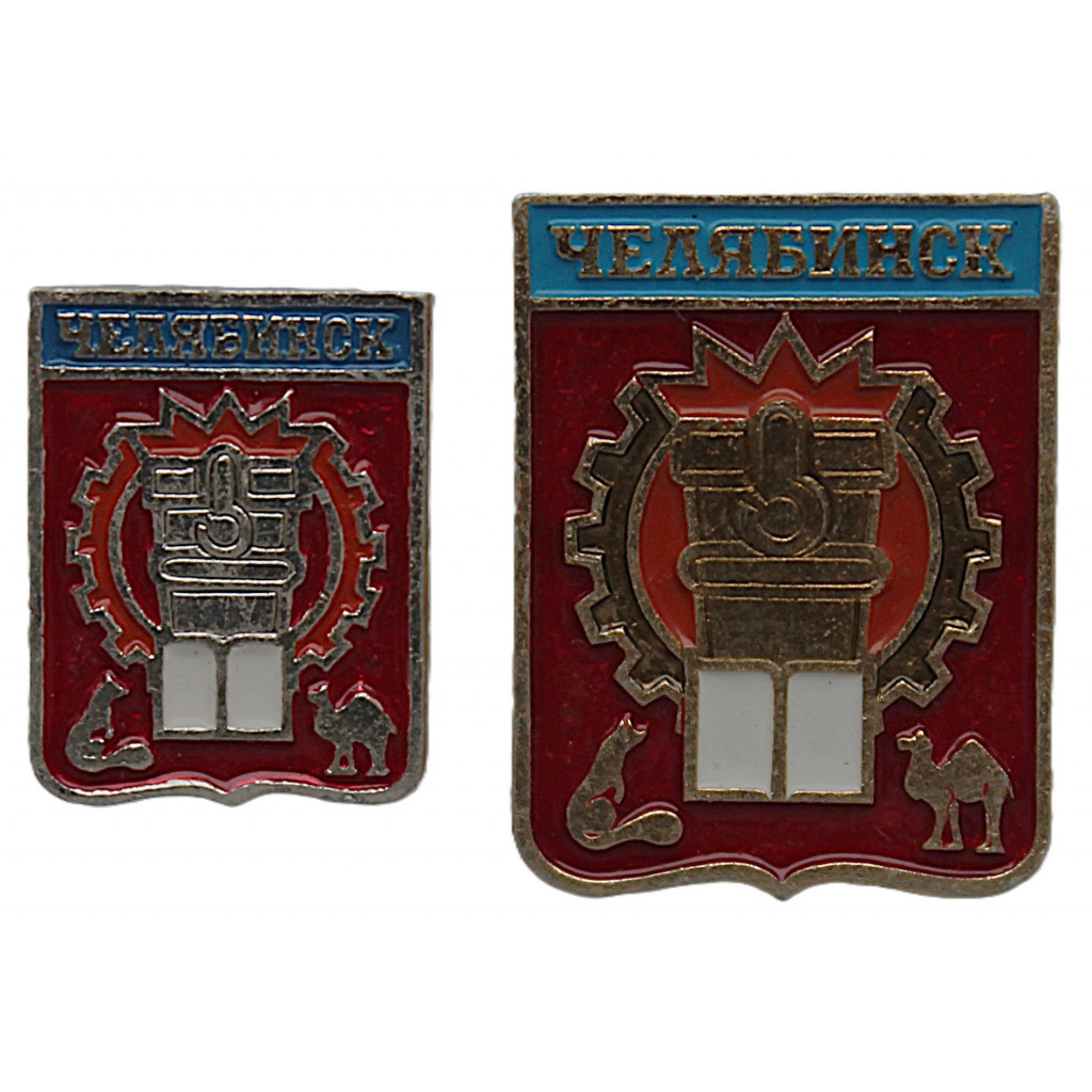 СССР нагрудный знак «ЧЕЛЯБИНСК». Герб города (комплект из 2 знаков)