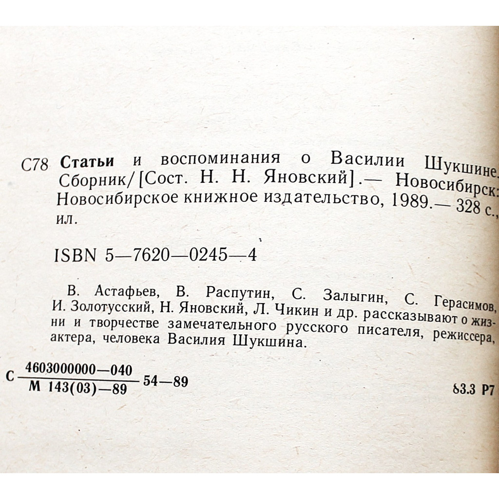 Статьи и воспоминания о Василии Шукшине. Сборник