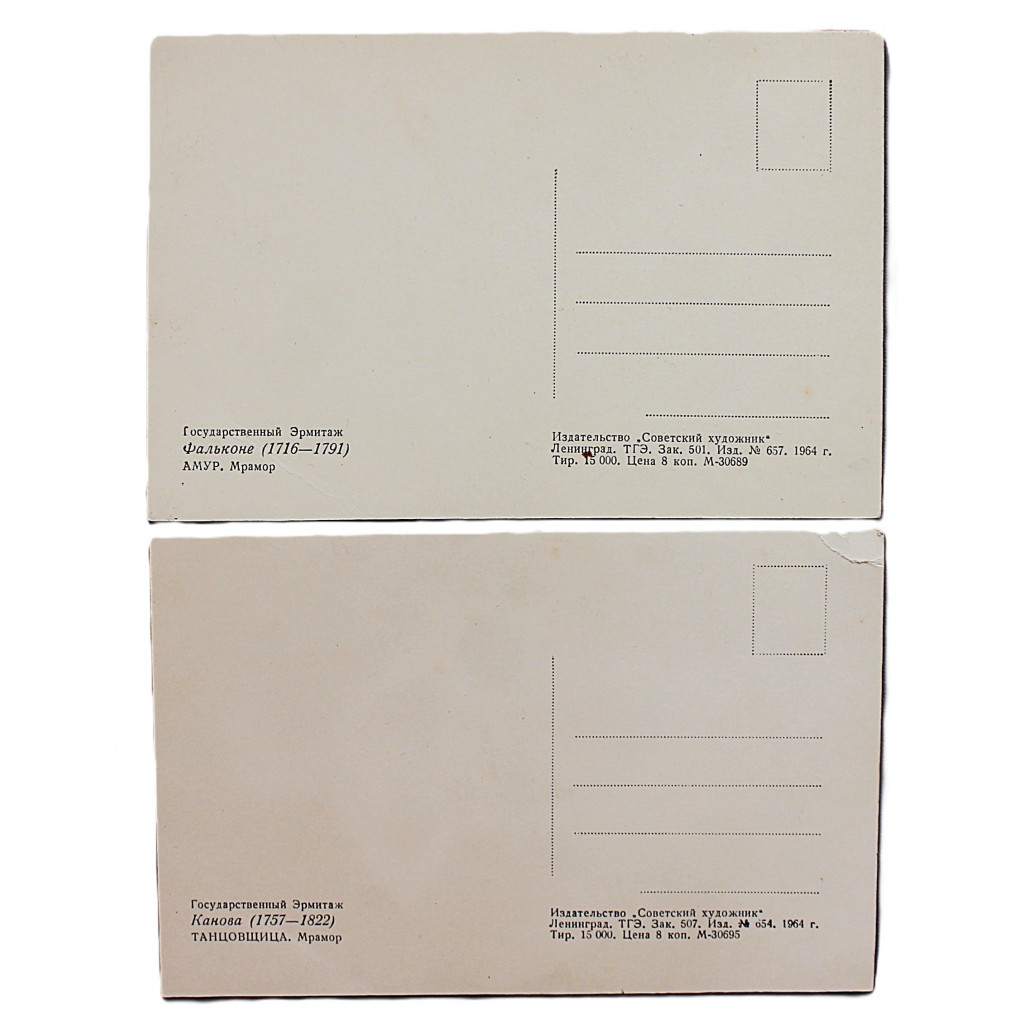 СССР пара почтовых открыток «ГОСУДАРСТВЕННЫЙ ЭРМИТАЖ». Танцовщица. Амур (1964 год) Чистые. Оригинальные. Посткроссинг