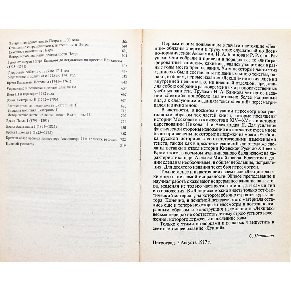 Полный курс лекций по русской истории - уникальное издание, в основу которого легли лекции, прочитанные С.Ф.Платоновым в Петербургском университете и на Бестужевских курсах. После очерков Д.И.Иловайского лекции С.Ф.Платонова стали самым подробным обобщающим изданием, в котором огромный период российской истории - от расселения славян в Европе до Великих реформ императора Александра II - был представлен ясно, образно, увлекательно. Этот курс лекций выдержал до 1917 года около 20 изданий.