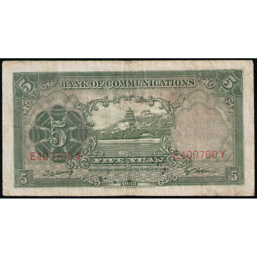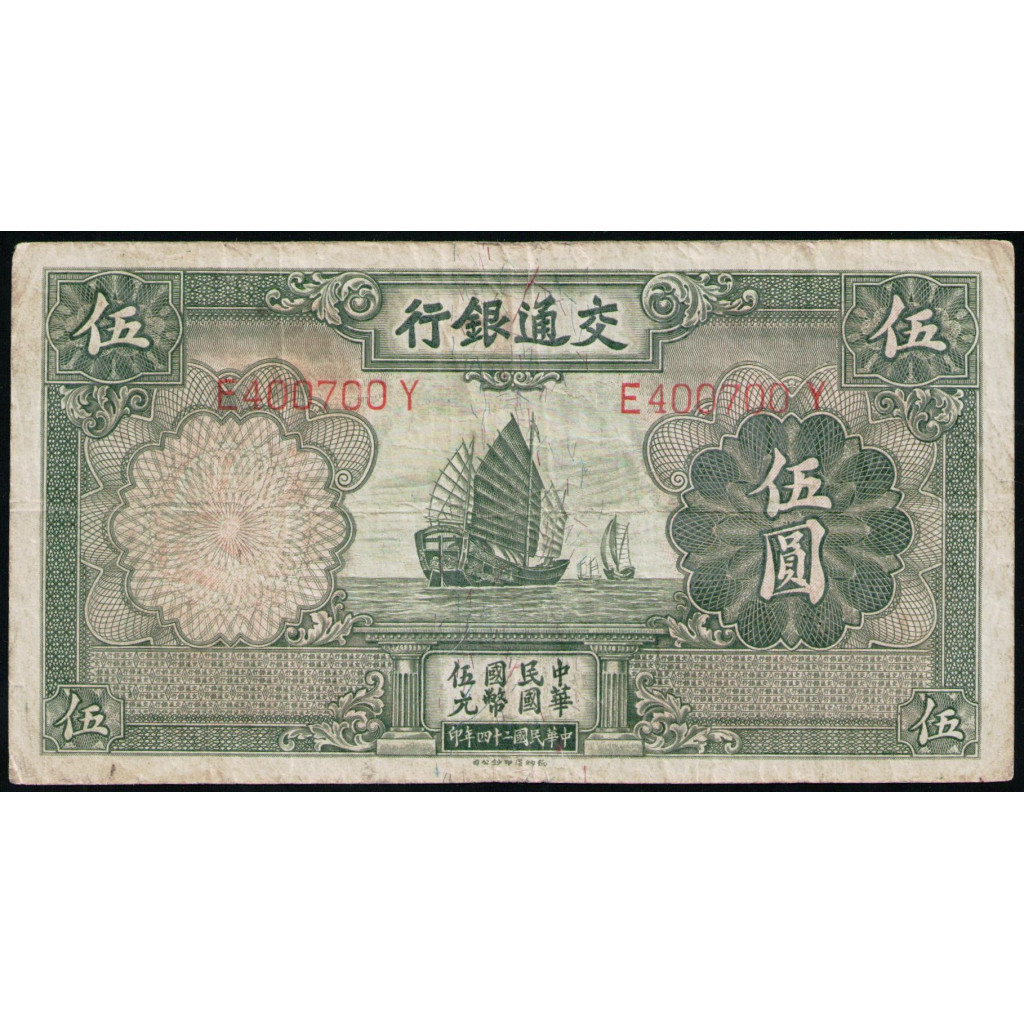 Китай 5 Юаней 1935 год , Парусное судно джонка