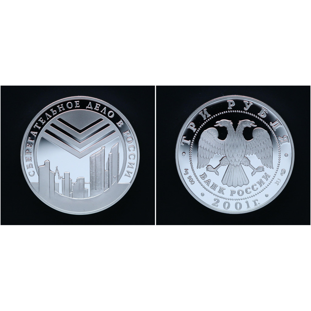 Россия 3 Рубля 2001 СПМД год Серебро Сберегательное дело / Эмблема