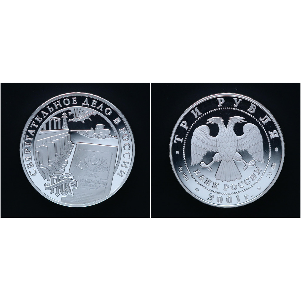 Россия 3 Рубля 2001 ММД год Серебро Сберегательное дело / Плотина