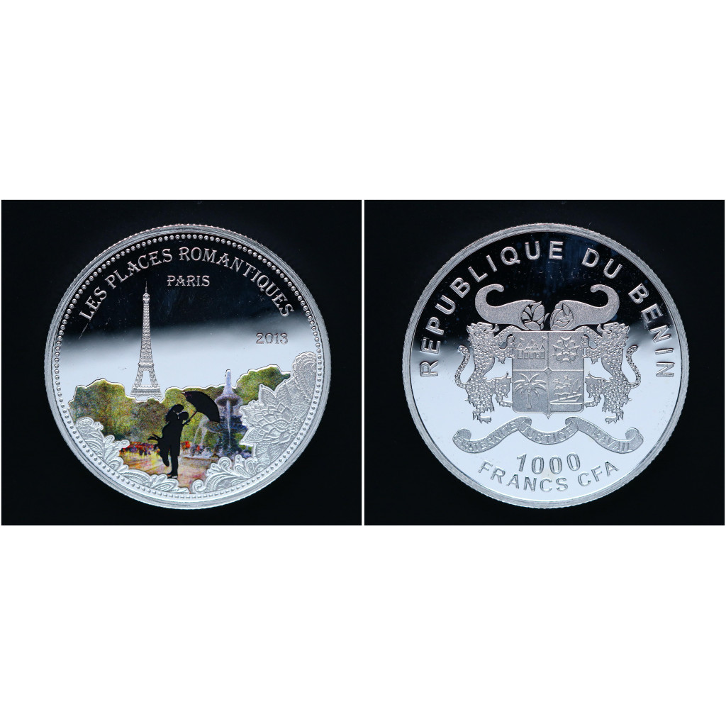 Бенин 1000 Франков 2013 год Серебро 999 Романтические места - Париж Цветная