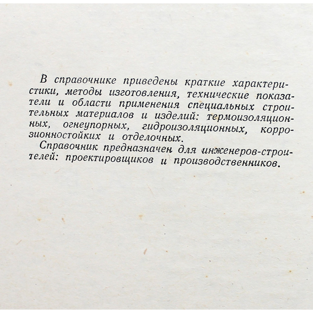 И. Ковельман - Специальные строительные материалы. Краткий справочник (1952 год)