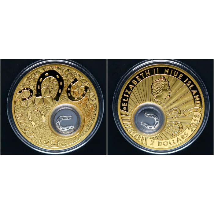Ниуэ 2 Доллара 2013 год Серебро Подкова на удачу! Позолота Елизавета II