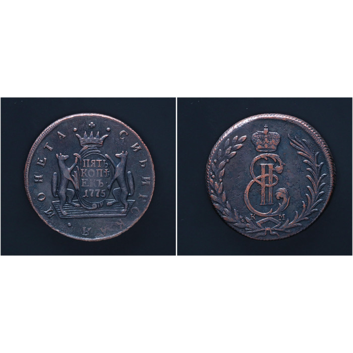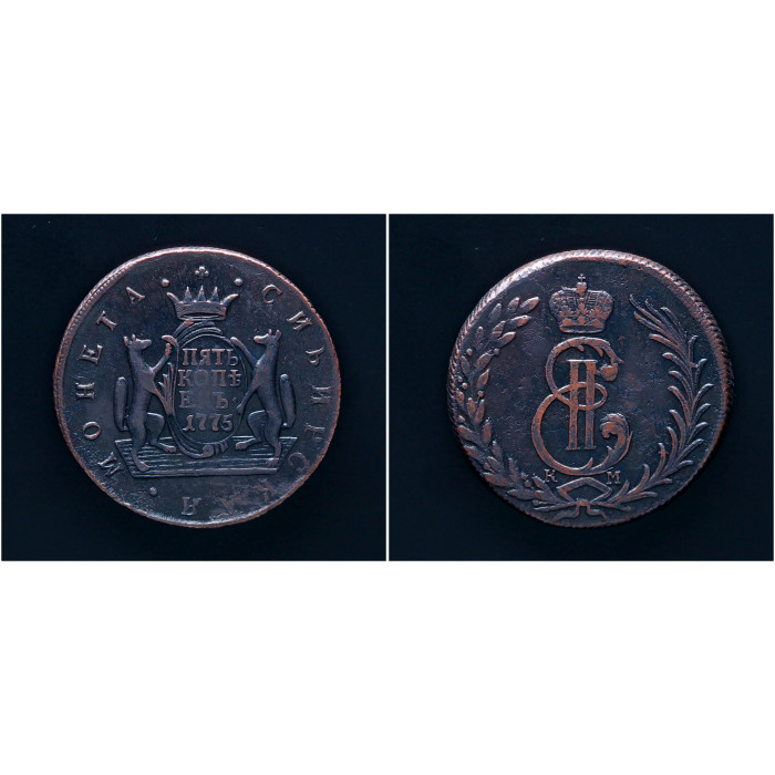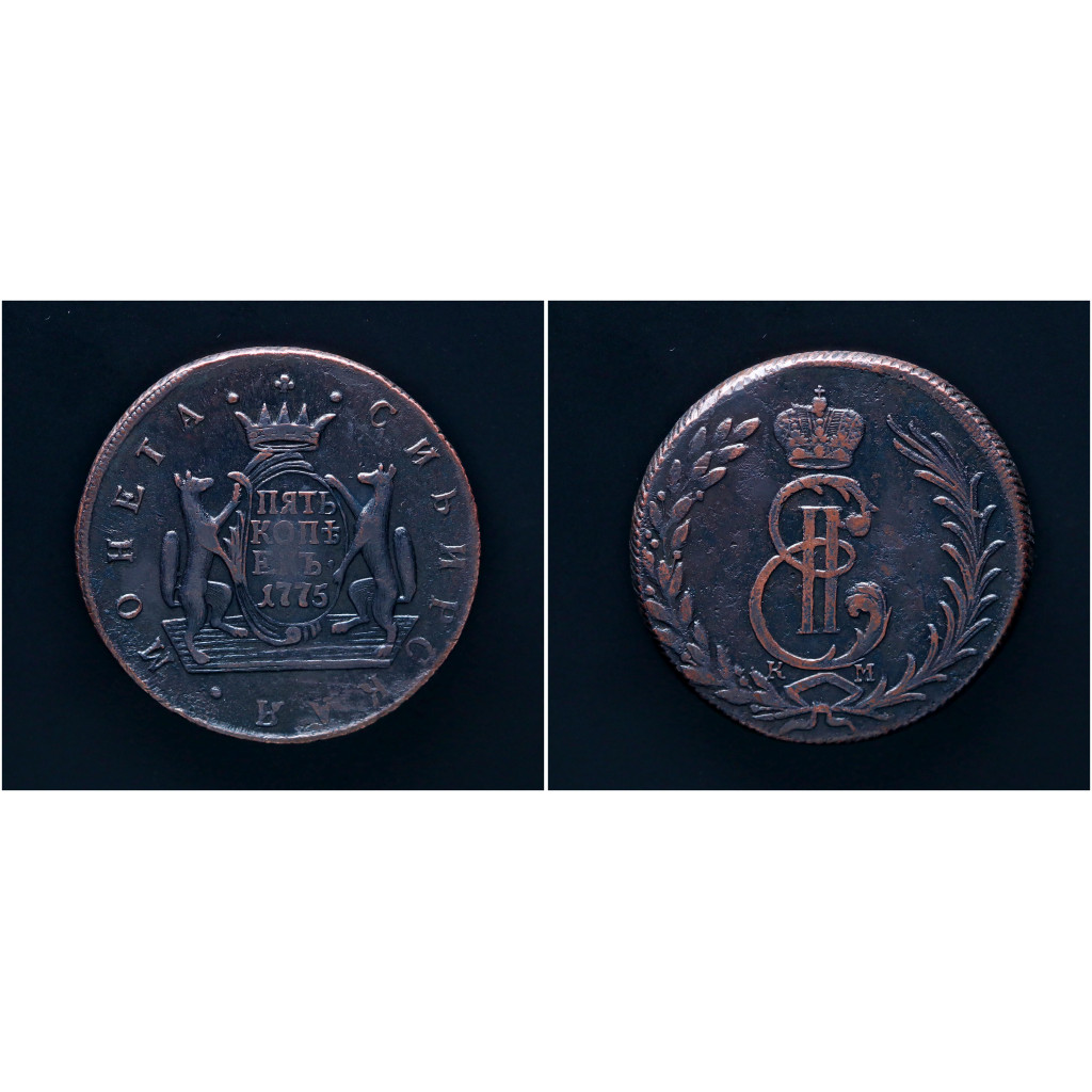 Россия Сибирь 5 Копеек 1775 КМ год Сузунский М/Д Екатерина II