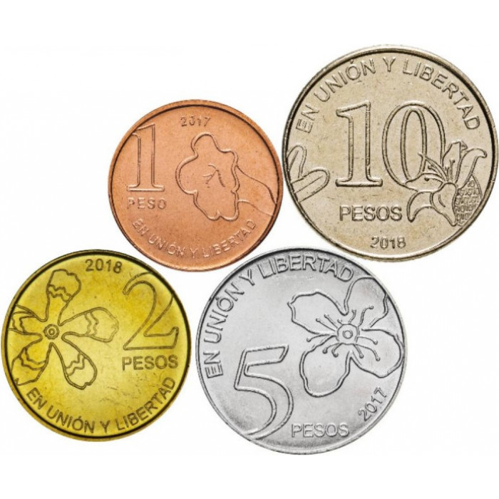 Аргентина 1 2 5 10 песо 2017-2020 год Набор из 4 монет