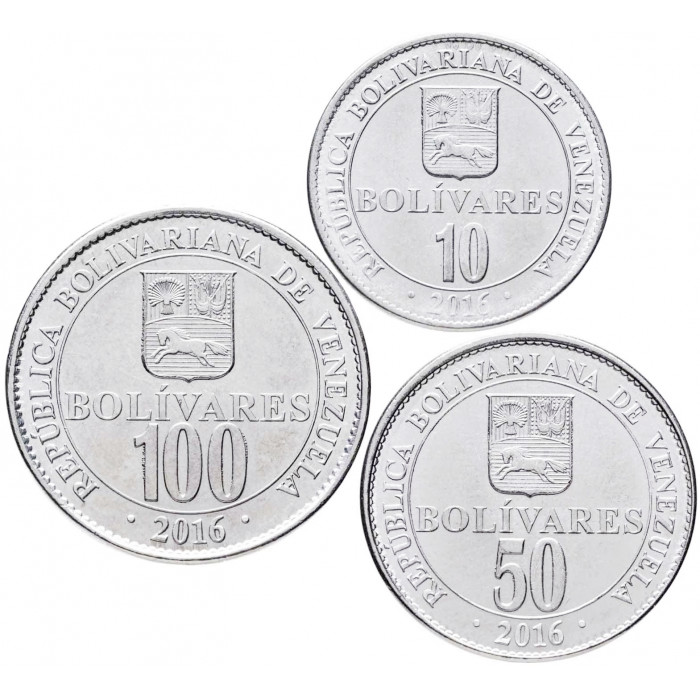 Венесуэла 10 50 100 боливаров 2016 год Набор из 3 монет