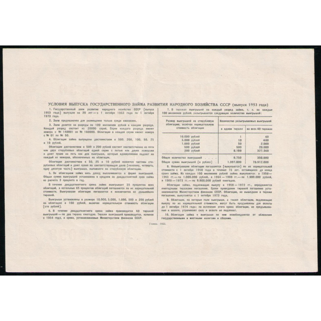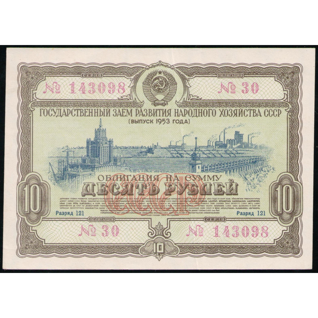 Облигация , 10 рублей 1953 год , Государственный заем развития народного хозяйства СССР