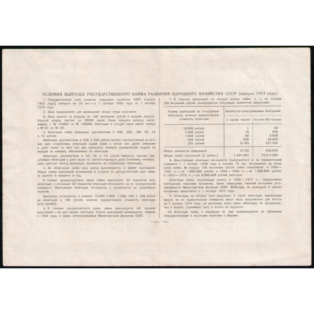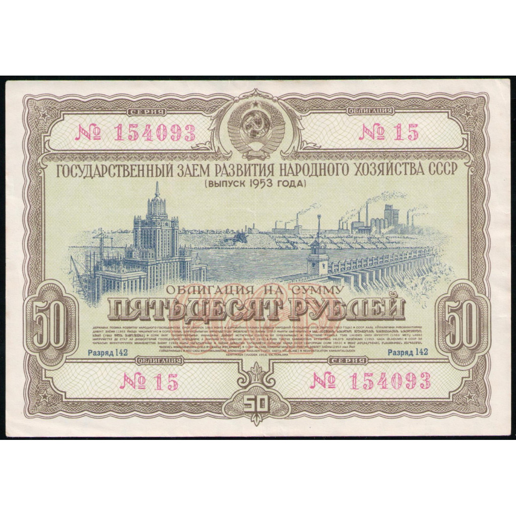 Облигация , 50 рублей 1953 год , Государственный заем развития народного хозяйства СССР
