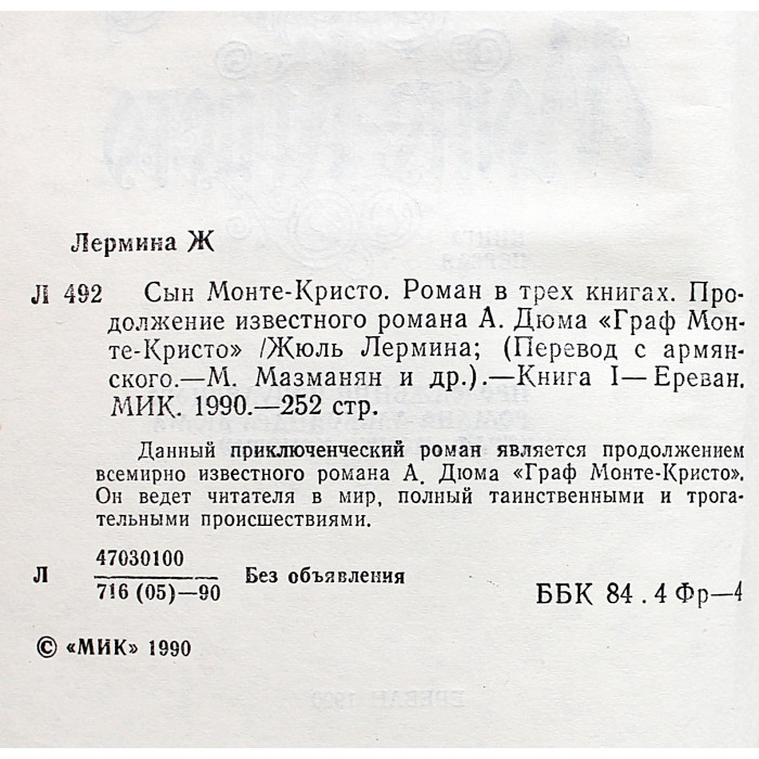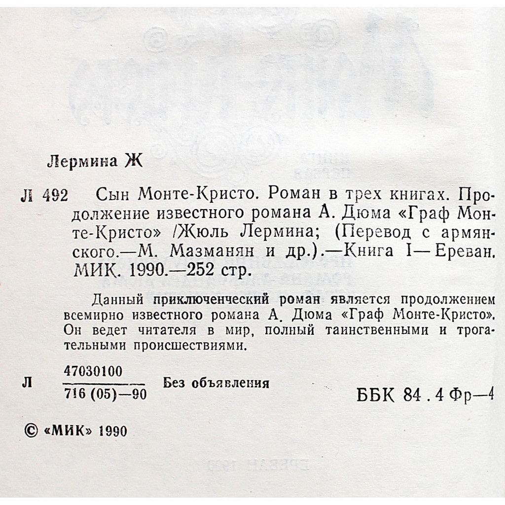 Ж. Лермина - Сын Монте-Кристо. Книга первая (Ереван, 1990)