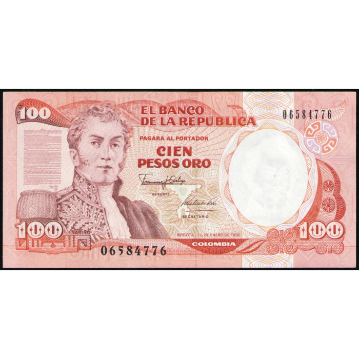Колумбия 100 Песо 1990 год , XF , Генерал Антонио Нариньо