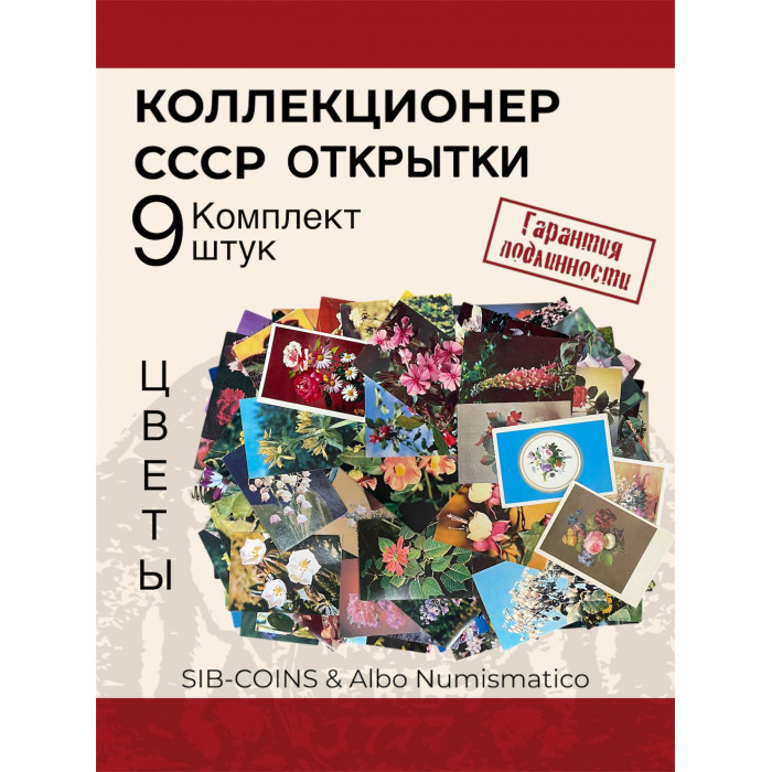 Коллекционер СССР - Открытки на тему Цветы. Комплект из девяти штук. Без повторов.