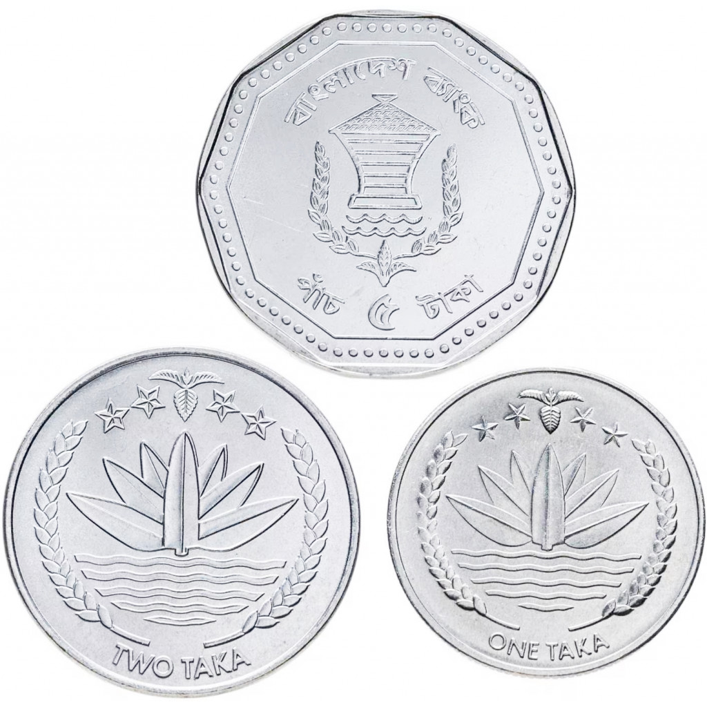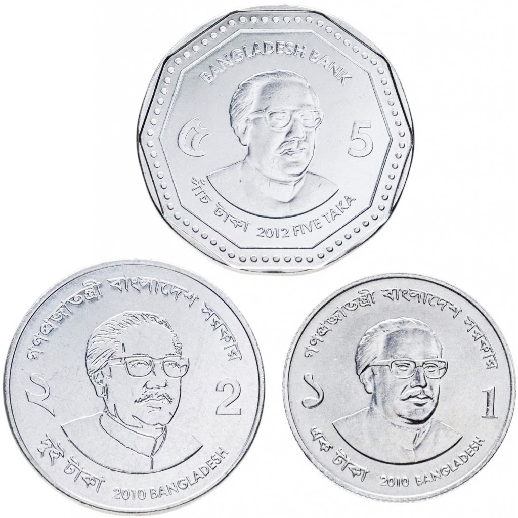 Бангладеш 1 2 5 так 2010-2014 год Набор из 3 монет