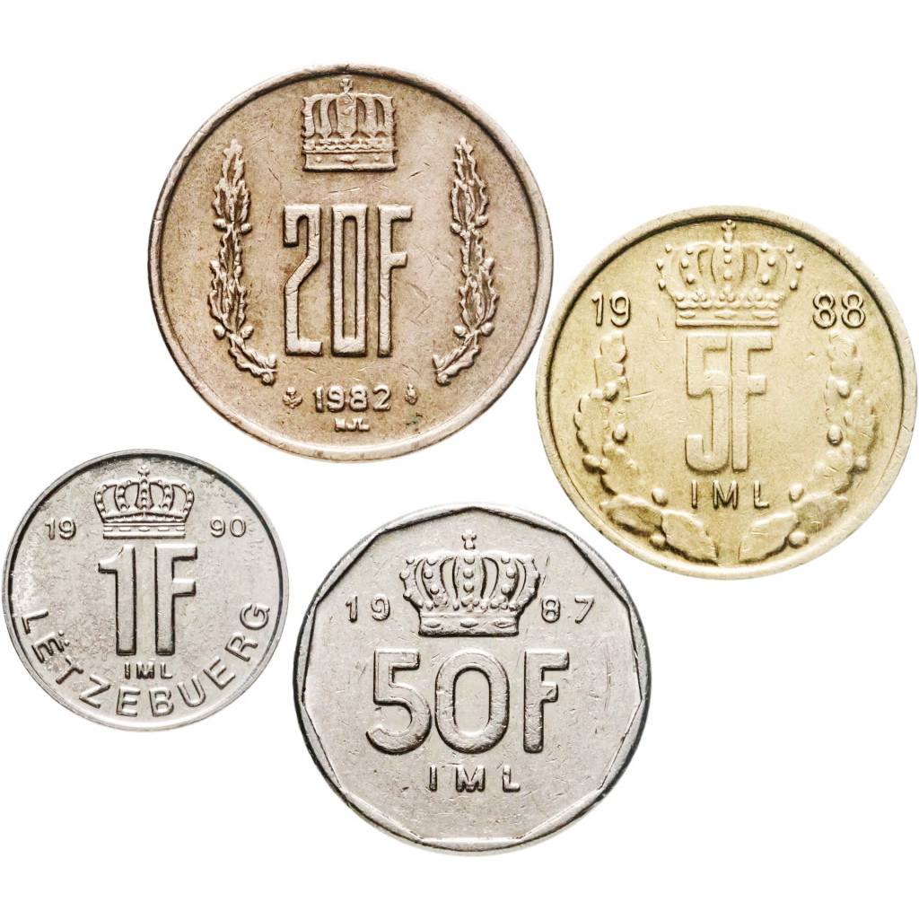 Люксембург 1 5 20 50 франков 1964-1995 год Набор из 4 монет