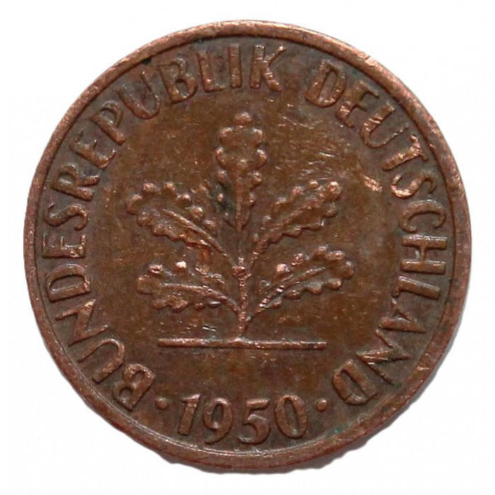 ГЕРМАНИЯ (ФРГ) 1 пфенниг 1950 J (KM# 105)