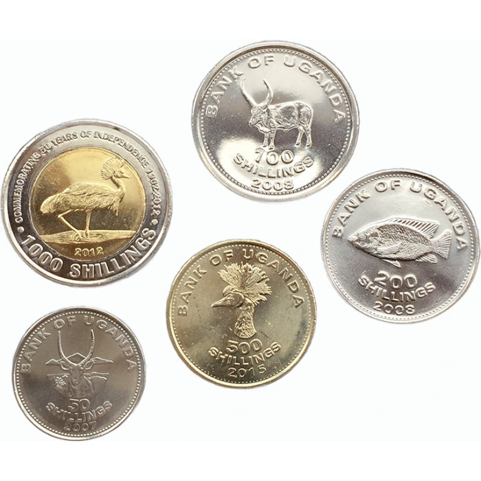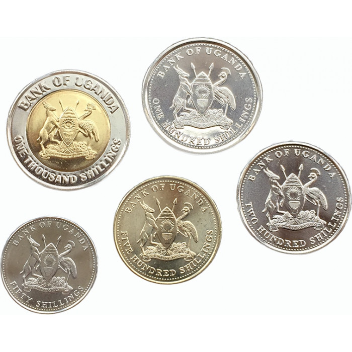 Уганда 50 100 200 500 1000 шиллингов 1998-2022 год Набор из 5 монет