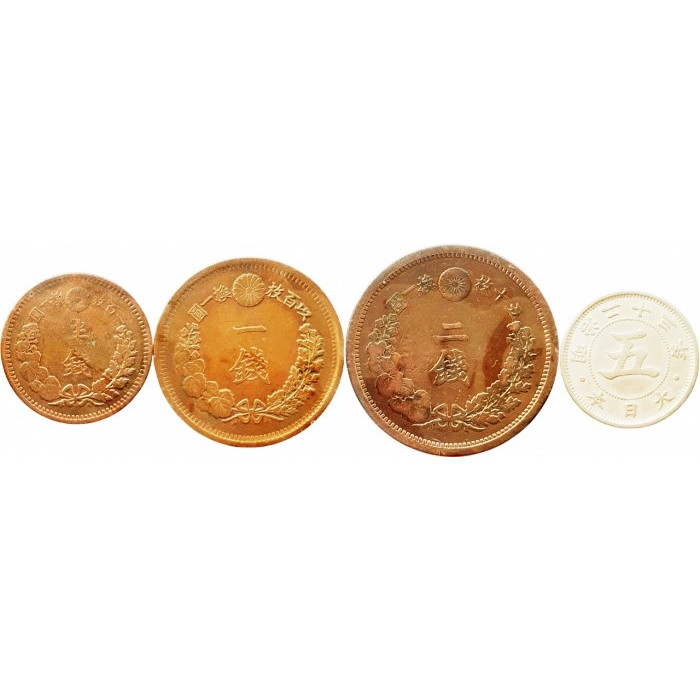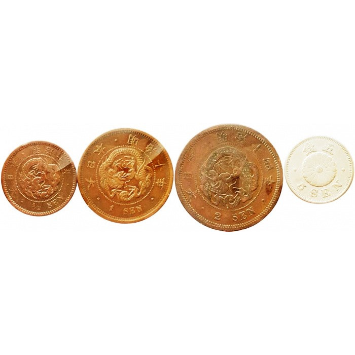 Япония 1/2 1 2 5 сенов 1868-1912 год Набор из 4 монет