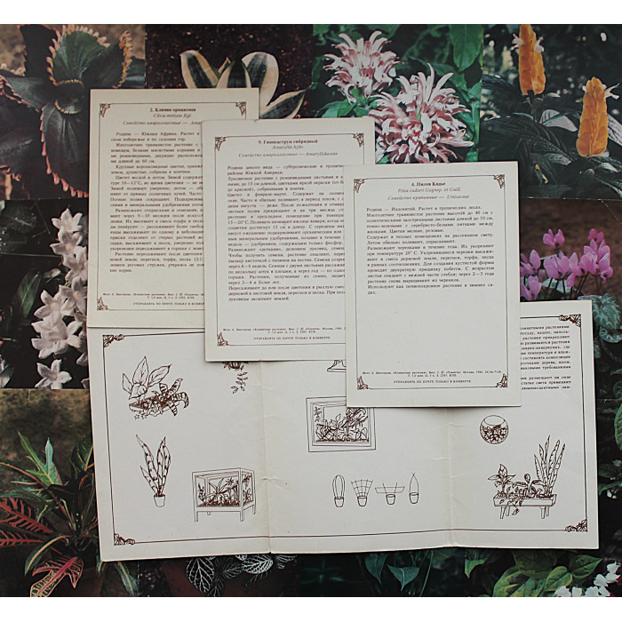 СССР комплект из 15 открыток «КОМНАТНЫЕ РАСТЕНИЯ». Выпуск 2 (Планета, 1986) Полный. Оригинальный