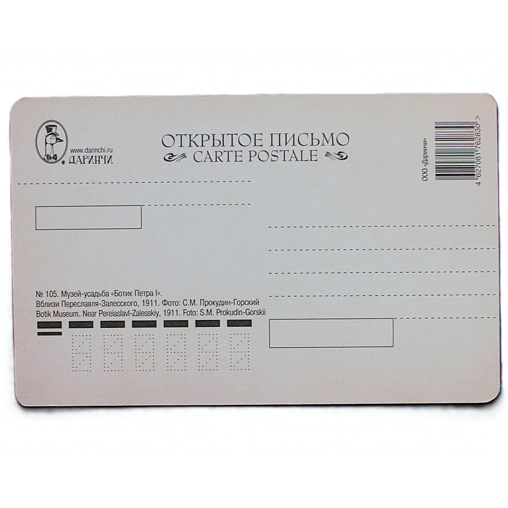 Открытка почтовая «ПЕРЕЯСЛАВЛЬ-ЗАЛЕССКИЙ». Музей-усадьба «Ботик Петра I» (изд. Даринчи). Чистая. Посткроссинг