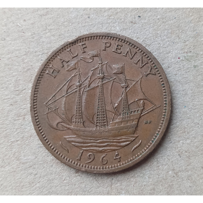 Великобритания 1/2 Пенни 1964 год , Английский галеон Золотая лань