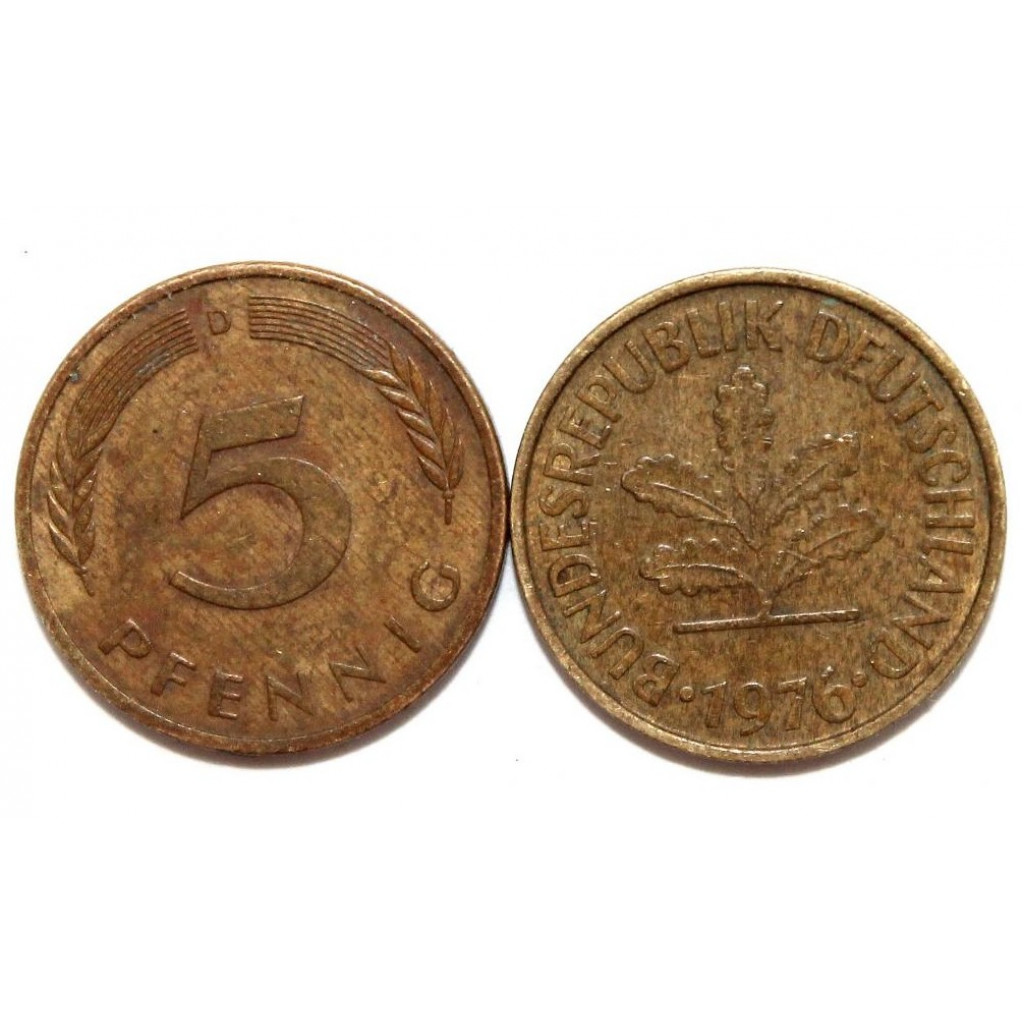 ГЕРМАНИЯ (ФРГ) 5 пфеннигов 1976 D