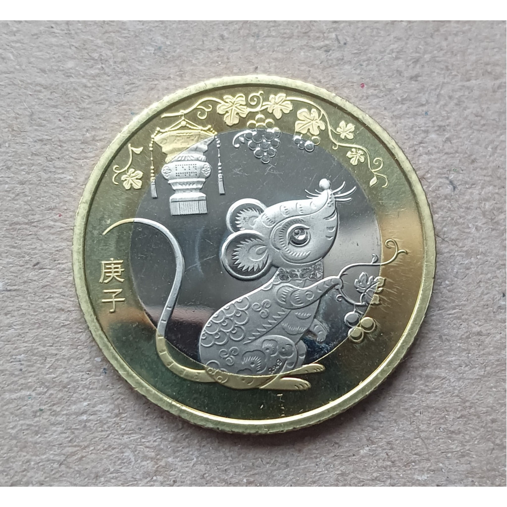 Китай 10 юаней 2020 год , Год крысы , Восточный лунный календарь , Биметалл