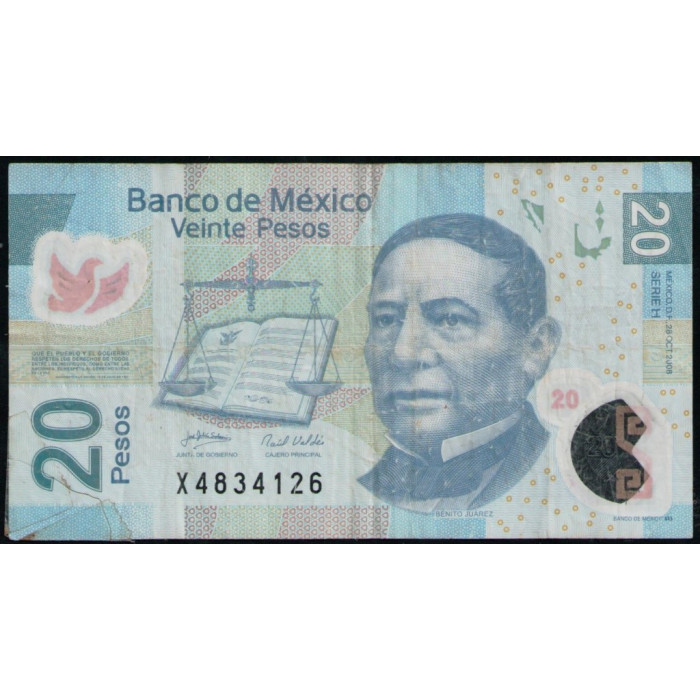 Мексика 20 Песо 2008 год , Бенито Хуарес , Полимер