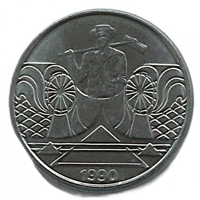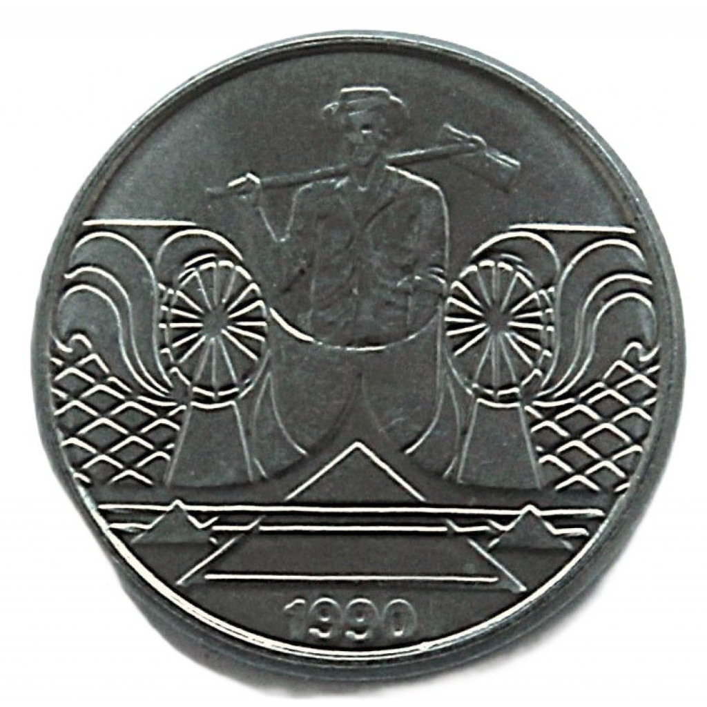 БРАЗИЛИЯ 5 крузейро 1990 (KM# 618.1). Работник пруда для испарения соли