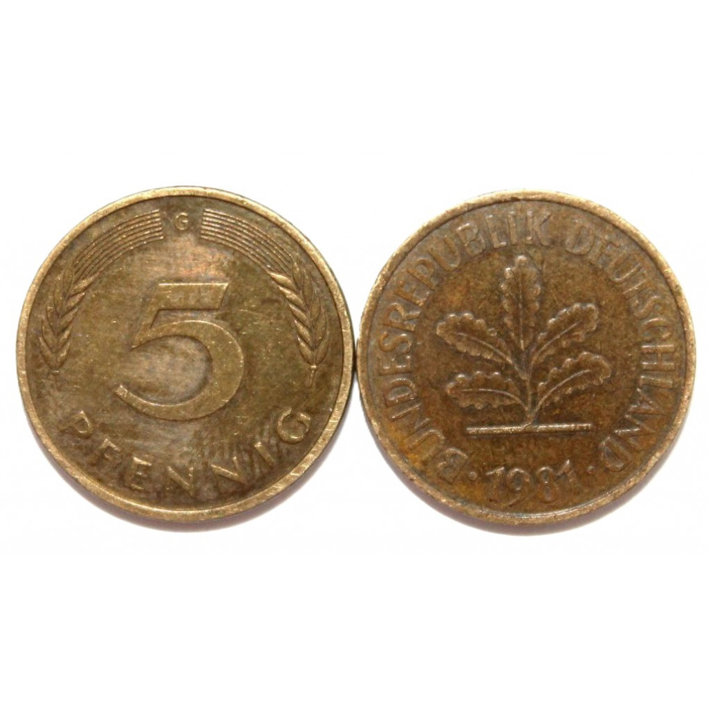 ГЕРМАНИЯ (ФРГ) 5 пфеннигов 1981 G