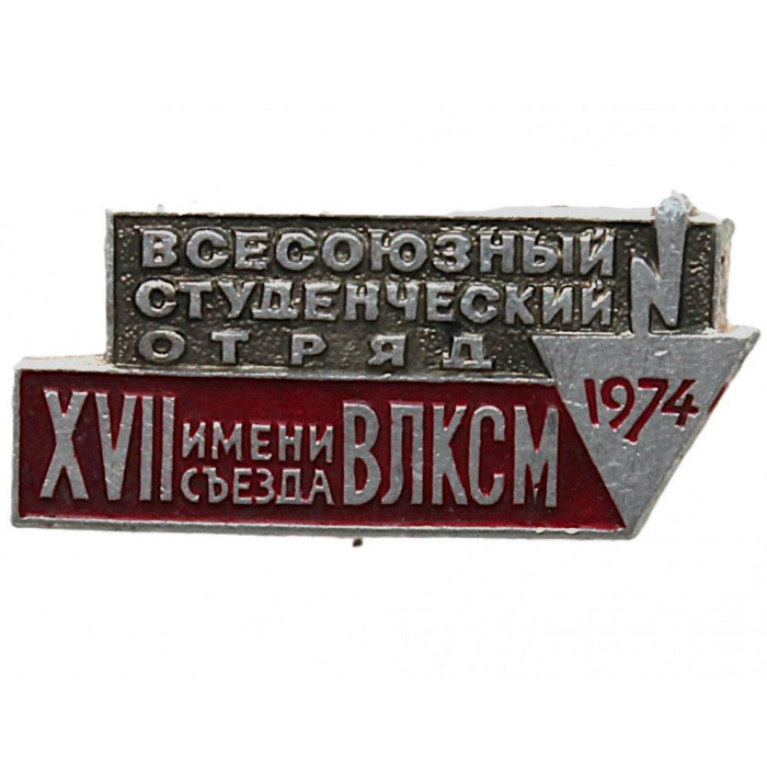 СССР 1974 нагрудный знак «ВСО». Всесоюзный студенческий отряд имени XVII съезда ВЛКСМ (Комсомол)