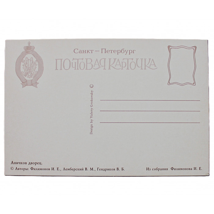 Почтовая открытка «САНКТ-ПЕТЕРБУРГ». Аничков дворец (чистая). Посткроссинг