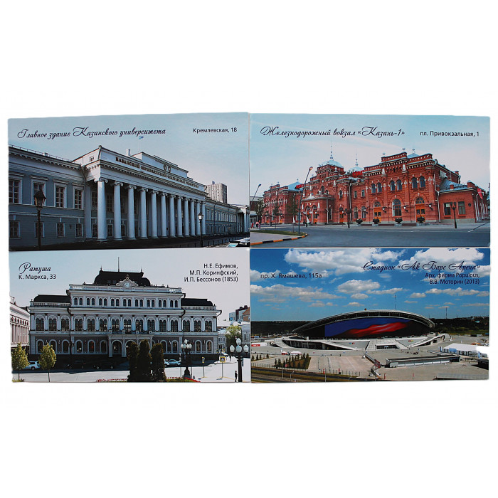 Комплект из 4 открыток «КАЗАНЬ». Стадион. Железнодорожный вокзал. Университет. Ратуша
