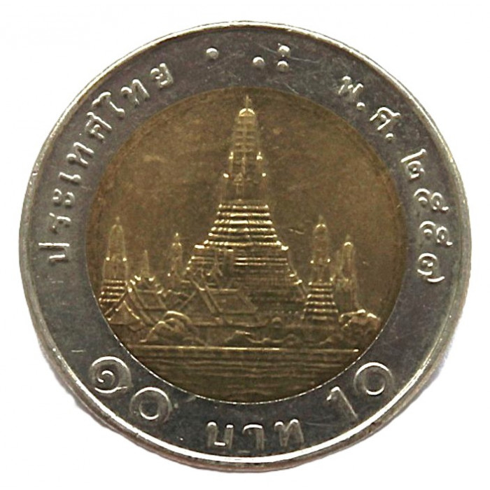 ТАИЛАНД 10 бат 2014 (Y# 459) Рама IX. Буддийский храм «Ват Арун» в Бангкоке