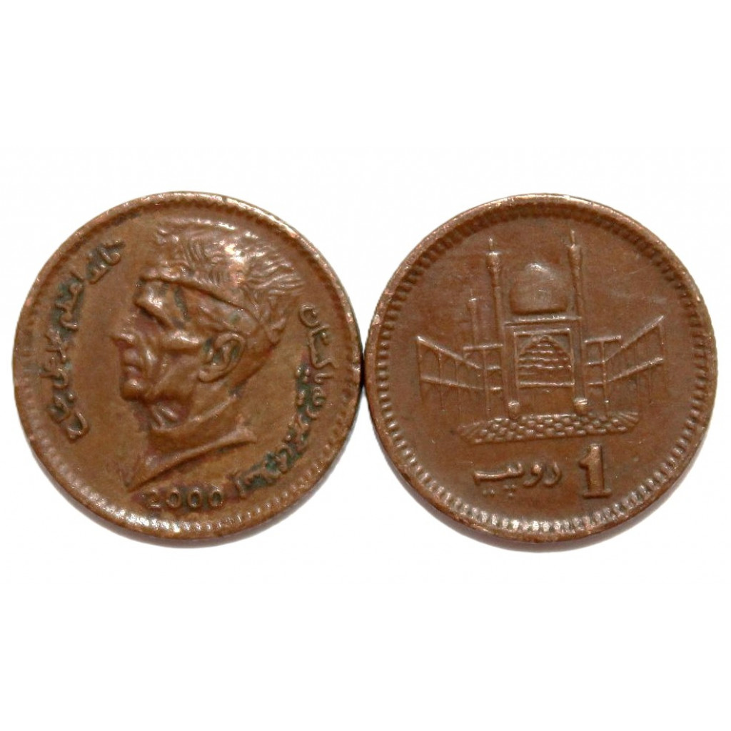 ПАКИСТАН 1 рупия 2000 (KM# 62) Мухаммад Али Джинна и Храм Лал Шахбаз Каландар