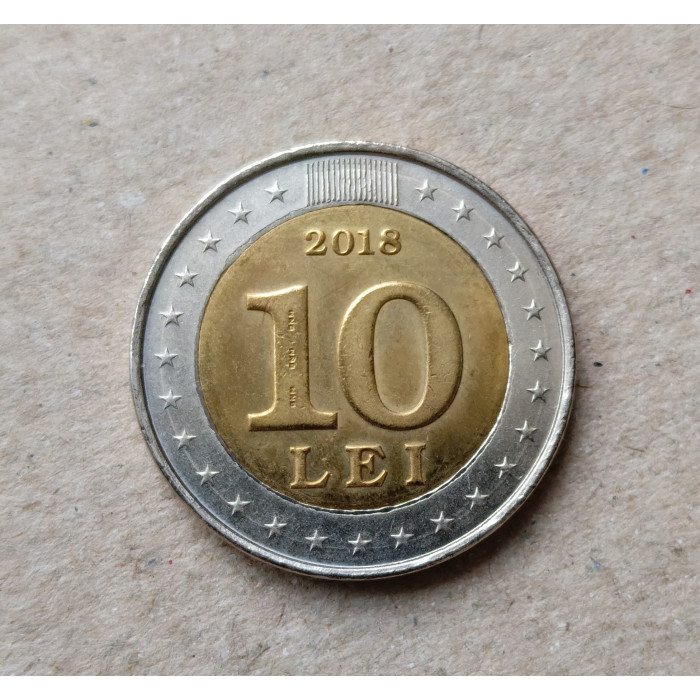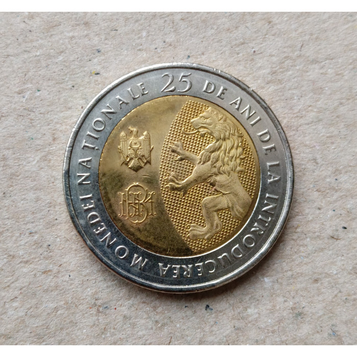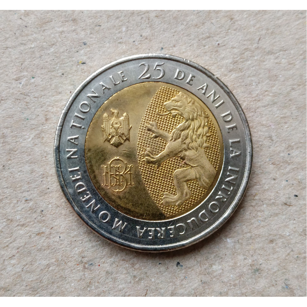 Молдавия 10 леев 2018 год , 25 лет национальной валюте , Биметалл