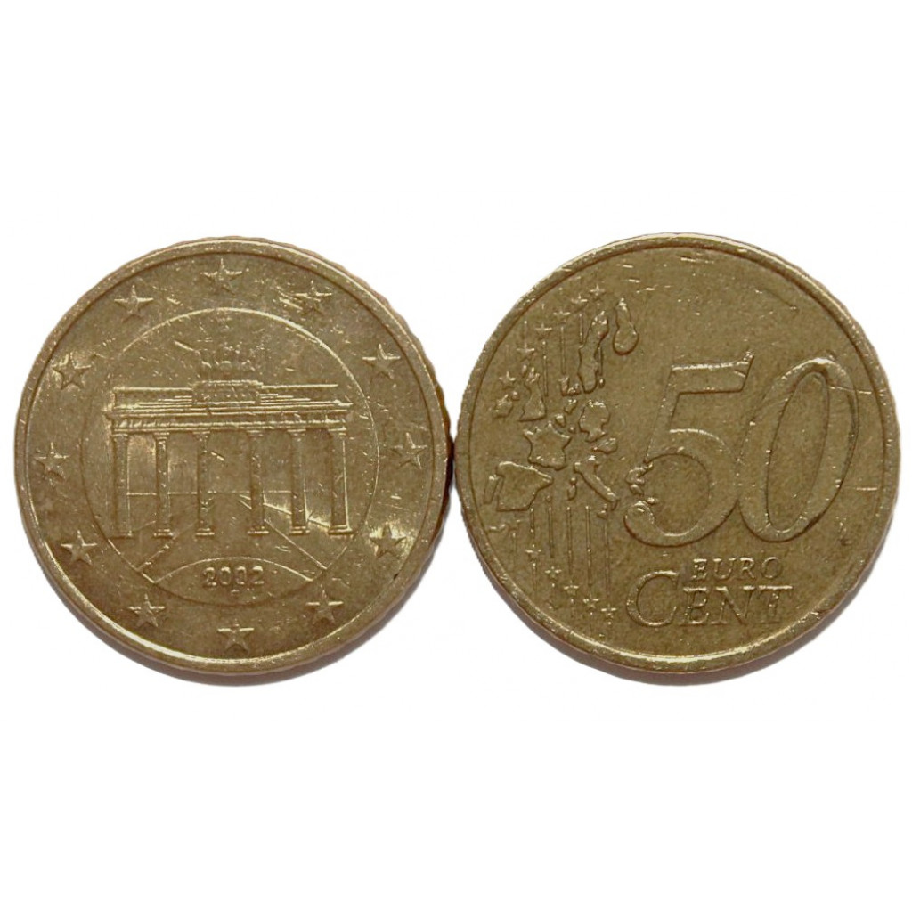 ГЕРМАНИЯ 50 евроцентов 2002 (F) Бранденбургские ворота в Берлине